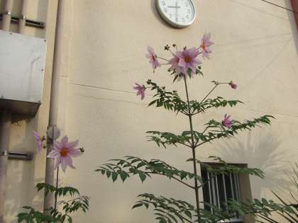 11月26日(月)玄関に植えてある皇帝ダリアがきれいな花を咲かせています。台風21号の風で根元から折れましたがたくましく復活、成長し、きれいな花を咲かせて登校してくる子どもたちを元気づけています。