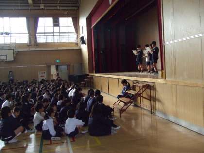 11月29日(木)体育館で児童集会を行いました。5年生の代表委員がランキングクイズを行いました。みんなで楽しい時間を過ごしました。