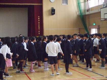 12月3日(月)3年生、4年生がホドリの会発表に向けて応援メッセージの練習をしています。元気よく頑張って練習しています。