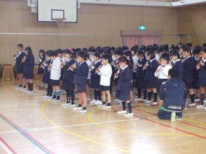 12月3日(火)5年生がホドリの会の発表に向けてリコーダーの練習をしています。きれいな音色が体育館に響いていました。