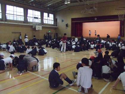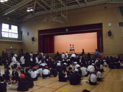 12月6日(木)児童集会を行いました。一昨日、昨日よりは少し寒い朝です。雨が降りそうな曇り空ですが子どもたちは元気に登校しています。今日はスポーツ選手当てクイズです。班で相談しながら答えを考えています。