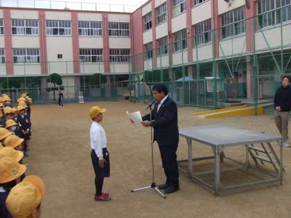 12月10日(月)寒い朝をむかえていますが子どもたちは元気に登校しています。今日の朝会では賞状の伝達を行いました。ホドリの会のみなさんが先日行われた「東南こども民族音楽会」で素晴らしい発表をしました。たいへんよくがんばりました。そして、中の写真は5年生児童が「三菱UFJ環境財団、日本ユネスコ協会連盟共催、第43回みどりの絵コンクールみどりの絵部門で毎日小学生新聞賞」を受賞しました。おめでとう。下の写真は受賞した絵です。