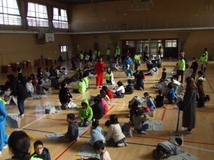 12月16日(日)平野西子ども会の皆様にお楽しみ会を行っていただきました。平野西小の子どもたちだけではなく平野西の地域に住む子どもたちが集まりました。バケツリレーや新聞紙を使ってスリッパを作ったり、震災時に役立つ利用方法を学んだりしました。そして、最後にビンゴゲームでお菓子をもらいました。子どもたちの笑顔がはじける楽しい時間でした。子ども会の皆様、地域の皆様ありがとうございました。