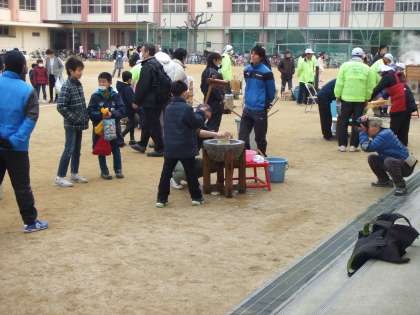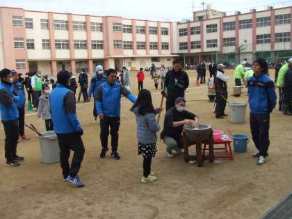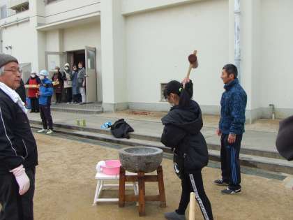 PTAの皆様、地域の皆様、本日はふれあいもちつき大会ありがとうございました。こどもたちはつきたてのおもちを食べることはあまりないと思います。子どもたちにそのような貴重な機会を作っていただきありがとうございました。