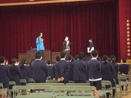 3月1日(金)今日から卒業式の練習が始まりした。6年生は卒業証書の受けと入り方の練習をしています。写真は1組、2組の様子です。