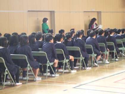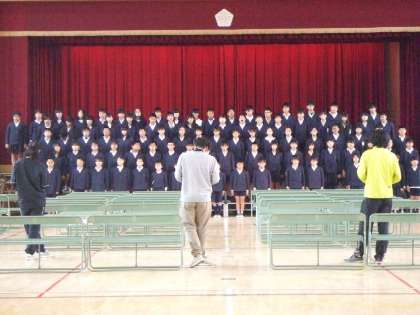 3月14日(木)5年生、6年生が合同で卒業式の練習をしています。5年生も6年生も大きな声での呼びかけ、歌。立派な態度です