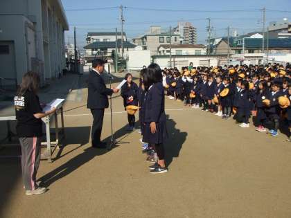 全校朝会・賞状の伝達