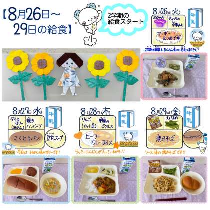 8月は、暑い日でも食べやすいようにゼリーなどのデザートがつく日が多くありました。しっかりと給食を食べて、2学期も元気にスタートしています。