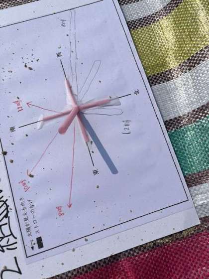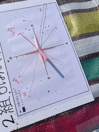 ? 「かげの向きと太陽のいち」を確かめるために、観察をしています。