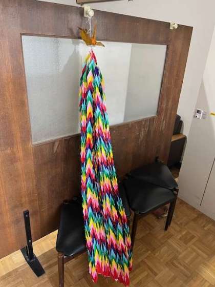 10人の実行委員が力をあわせて完成させたそうです(過去に制作中の記事をのせました)。平和登校日に全学年で折った鶴をまとめてくれました。