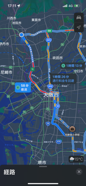 阪神高速にのりかえます。 たっぷり渋滞中のようです(涙) ^_^{家に帰るまでが修学旅行!