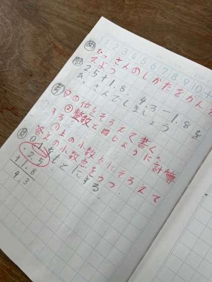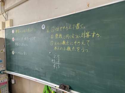 「小数のしくみとたし算、ひき算」の学習をしています。