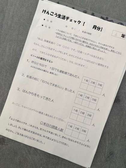 給食時間に校舎を歩いていると、保健委員会の人たち…