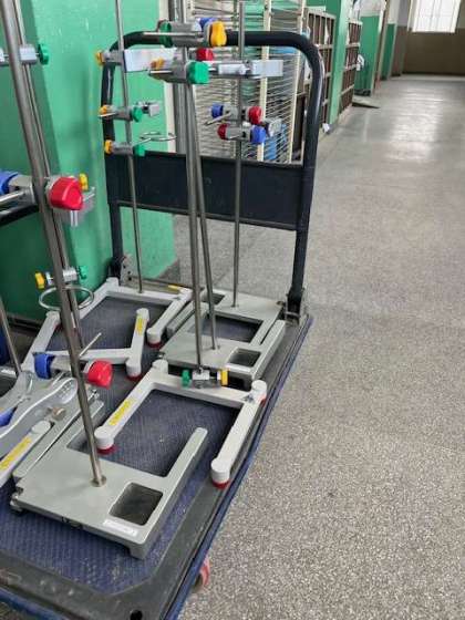 廊下に台車。