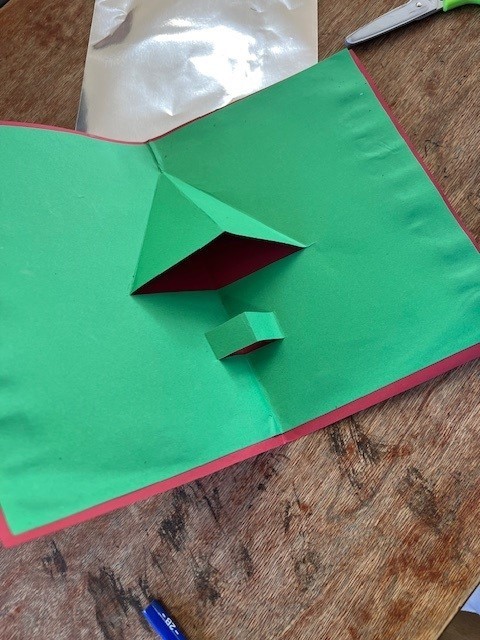 先生が黒板に書いた「メリークリスマス」を一生懸命カードにうつしていました。
