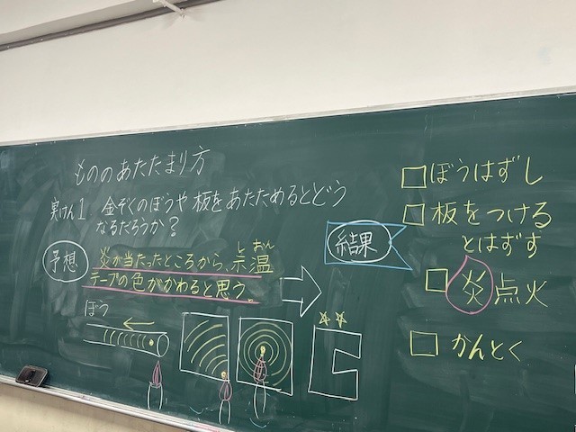 理科室で「金ぞくのあたたまり方」の実験をしていました。