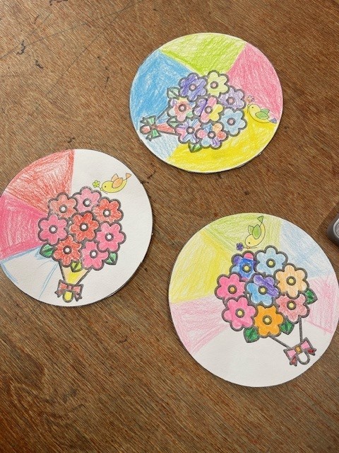 1年生が「メダル」に丁寧に色をぬっています。