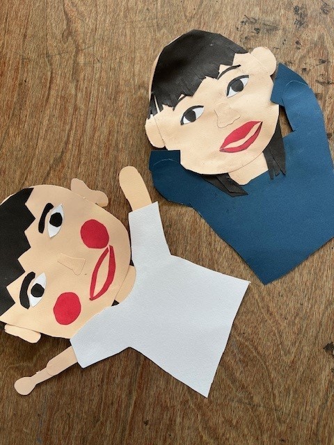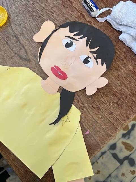 2年生が画用紙で「わたし」を作っていました。