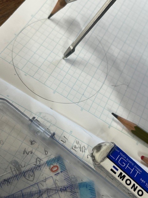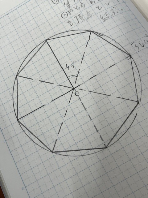 正多角形のかき方を学習中なようで、ノートに作図をしていました。