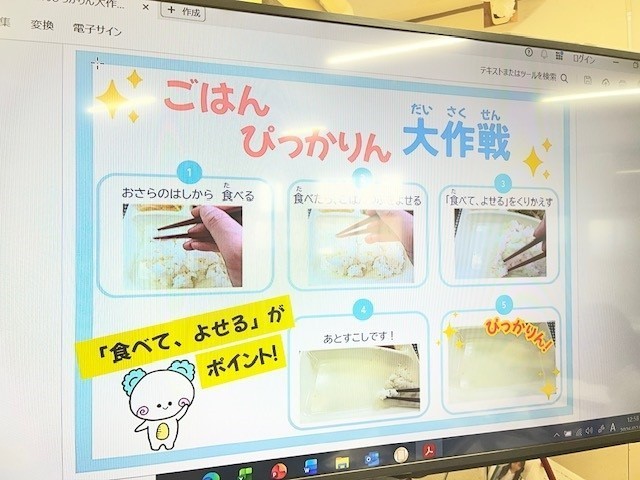 1組に入ると、テレビ画面に「ごはんぴっかりん大作戦!」の表示。
