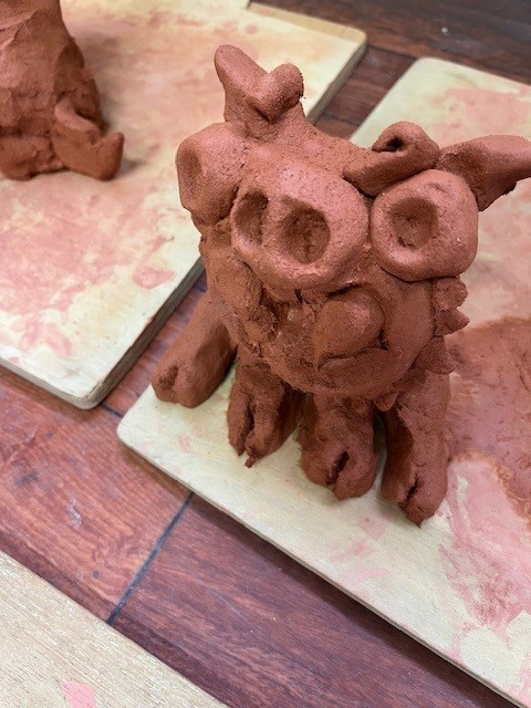 のぞいてみると、粘土とむきあう5年生たち…