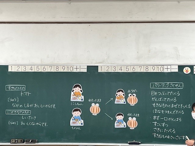 1年生の2回目の食育は「じぶんの『みらいさん』をおこそう」です。