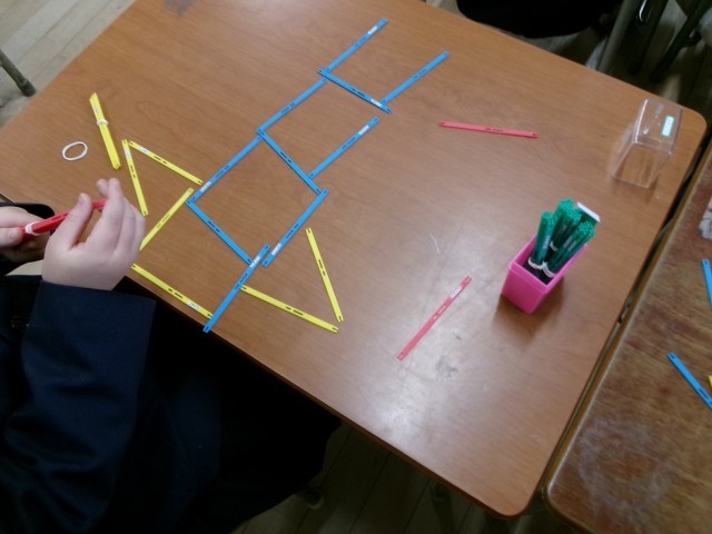 色板でかたちづくりをしたあとは、「かぞえぼう」でいろいろな形を作っていました。