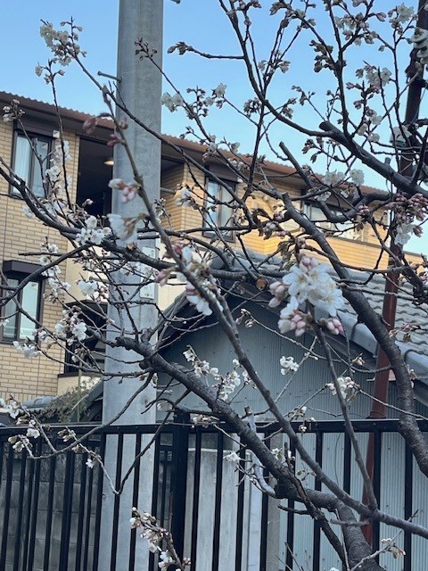 先月末につぼみが膨らんでいる様子をお伝えした学習園の桜です。