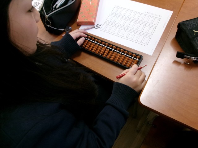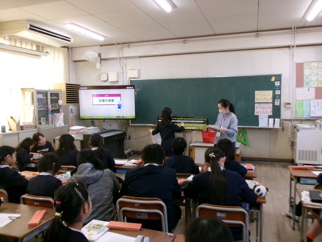 ゲストティーチャーを招いて「そろばん」の学習をしていました。