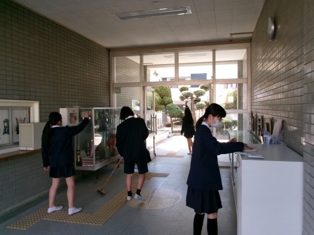 2時間目、校長室を出ると、6年生が掃除をしています。