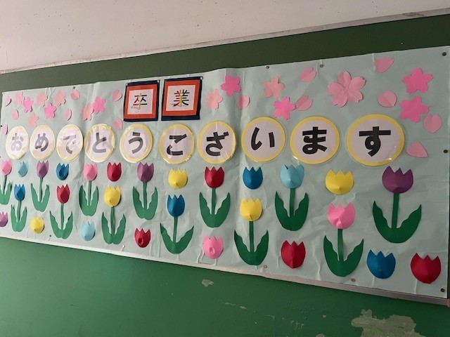 校内の掲示物が「卒業モード」になっています。