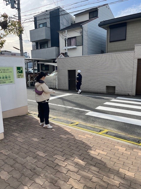 緑のベストを着た、地域の「見守り隊」のみなさんも立ってくださっています。