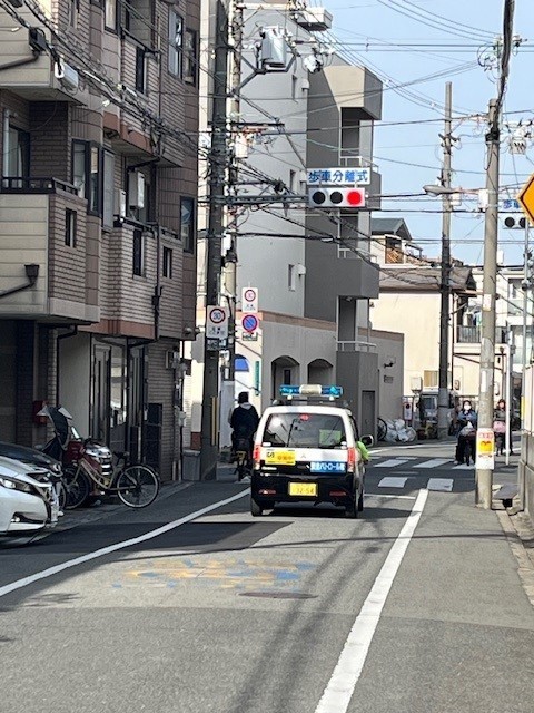 今朝はお巡りさんも交差点で登校時の安全を見守ってくださっていました。