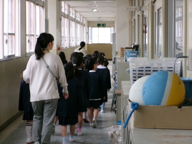 「しーーーーん」静かに、そしてピシッと並んで学校をめぐっていきます。