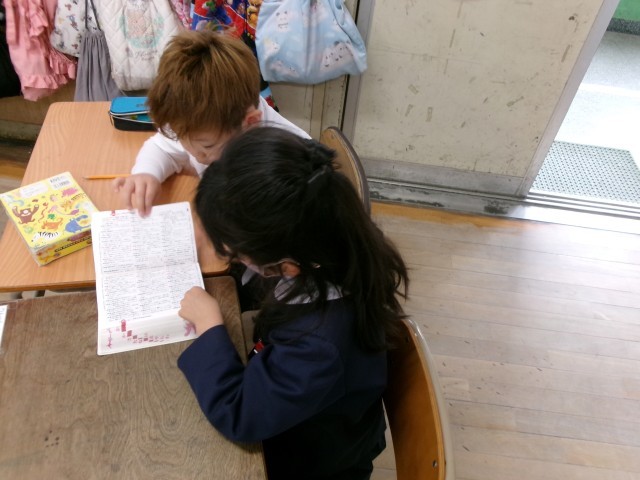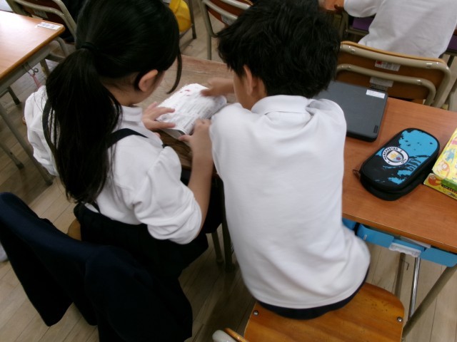 右の列の人が先生が提示した「お題」を辞書から探します。