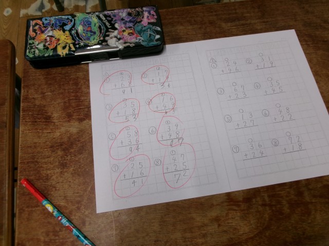 たし算の筆算のまとめの練習をしていました。