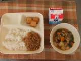 4月18日(木)の給食は鶏肉とじゃがいもの煮物、あつあげのしょうゆだれかけ、紅鮭...