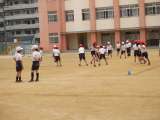 5月20日(月)4年生は体育でリレーの練習をしています。バトンパスうまくいったか...