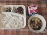 5月22日(水)の給食は豚肉のごまだれ焼き、五目汁、ひじきの炒め煮、ごはん、牛乳...