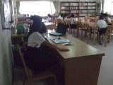 5月29日(水)昼休みの図書室の様子です。図書委員さんがカウンターで貸出本や入室...