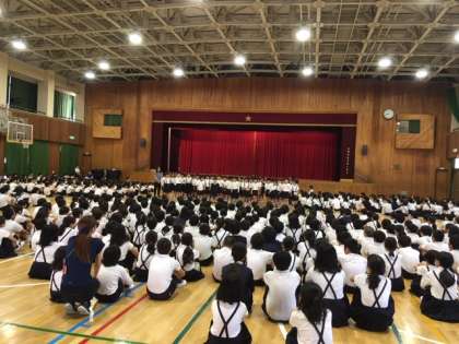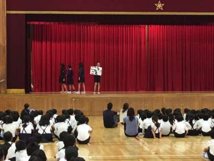 今日はいじめについて考える日です。朝会時には、各学年の学年目標が発表されました。児童会からはいじめについて考えるきっかけを、劇で発表し、みんなに呼びかけてくれました。