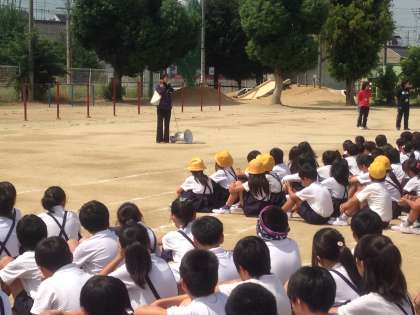 その後、運動場に集合して、平野警察に方のお話と、生活指導部長の永井航先生のお話を聞きました!