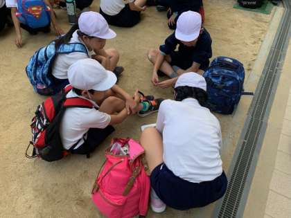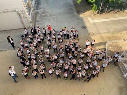 帰校式後には、みんなでイッテQ!のポーズをしました。