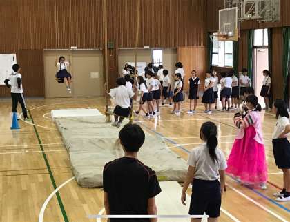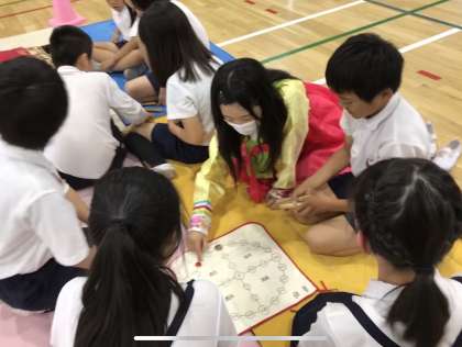 ムグンファの子どもたは学年の子どもたちに、韓国朝鮮の文化を伝えました。