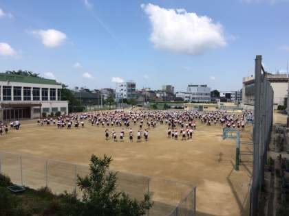 体育集会を行いました。なかよし班で上級生から下級生へラジオ体操を教えています。みんな一生懸命活動できていました。