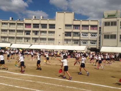 1年生の団体演技「花火だ 祭りだ わっしょいしょい!」です!