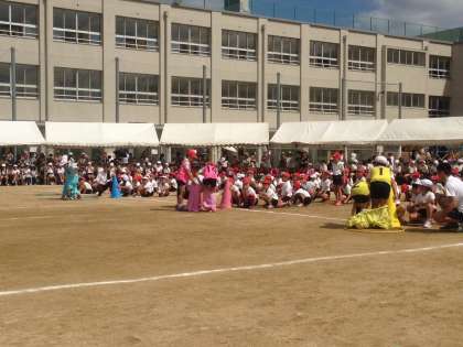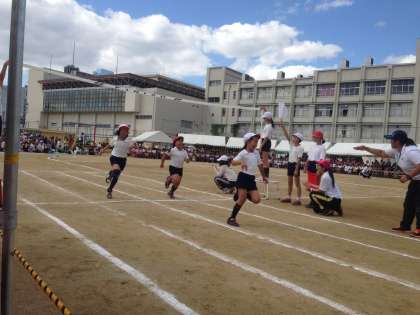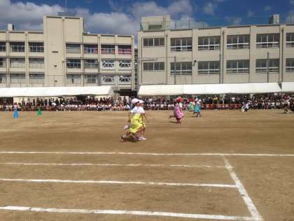 2年生の団体競技「ふたりはともだち」と徒競走の様子です!