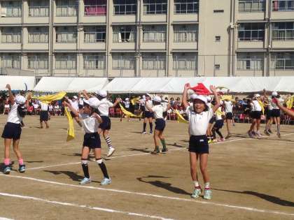 手にバンダナをまいておどる演技で、とても元気でカラフルでした!