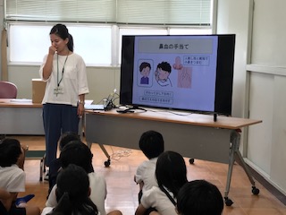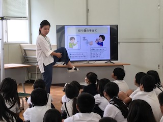 2学期が始まりました。夏休みの間に、ぐんと背が伸びた子どもたちです。発育測定の前には、けがや病気の簡単な手当てについて学びました。運動会に向け、まずはけがをしないように生活できるように気を付けてきたいですね。
