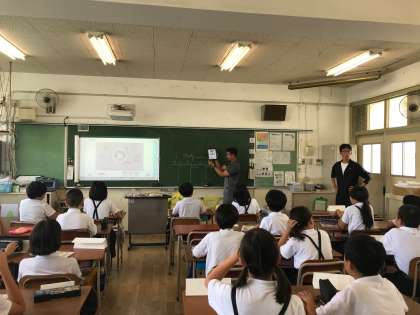 ジェスチャーで教科を表現したり、I study〜.や、What do you have on〜?などの文章を練習したりしました。